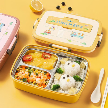 304 Edelstahl 3-fach 1250ml Lunchbox in Lebensmittel qualität für Kinder und Neugeborene Enthält Essstäbchen und Löffel für die Schule