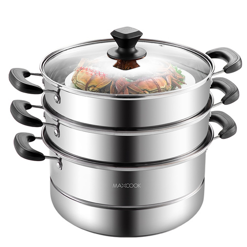 Maxcook/24cm Edelstahl Food Steamer Pot Glas deckel Edelstahl Suppe Suppen topf Kochgeschirr Composite Metal