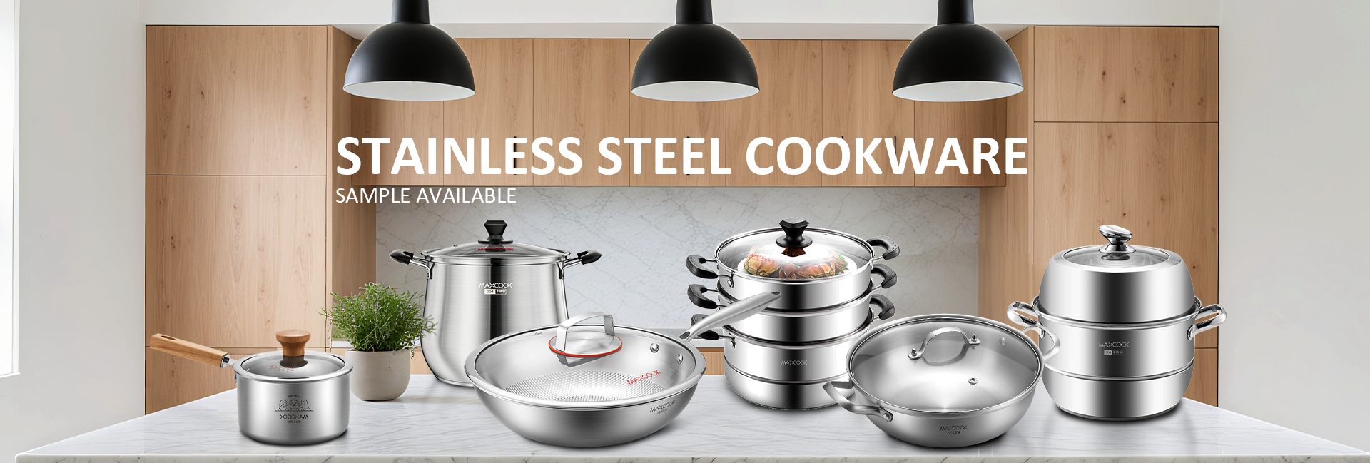 Maxcook 20/22/24cm Acero inoxidable 304 Vaporera para alimentos Tapa de vidrio 304 Acero inoxidable Sopa Stock Olla Utensilios de cocina Metal compuesto