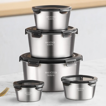 Maxcook 316ss Roestvrijstalen Ronde Opbergdoos Voedselcontainer Met Deksel Voor Kampeerkeuken Pasgeborenen Lunchbox