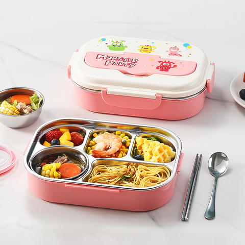 ホットセール可愛い柄316グレードステンレススチール4/5コンパートメントランチボックス加熱可能学校弁当食品包装用